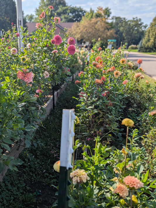 Collecting, sorting and packaging seeds is certainly a labor of love especially when you do it all by hand. These dahlia seeds were collected in the fall of 2025 from two different locations. The first location we dubbed "Unicorn Alley". All the varieties at this location were new to us "unicorns". All of these were double varieties with no open centered dahlias. The other location was on a different property where we had a larger field with 99% double dahlias along with two open centered varieties (Rhubarb and Custard and Sandia brocade).