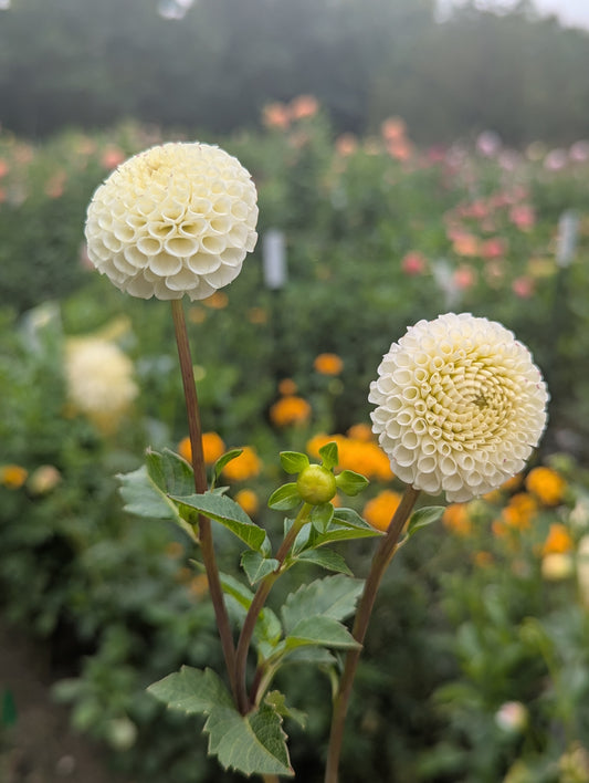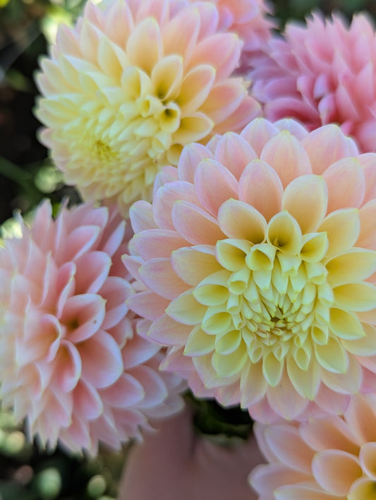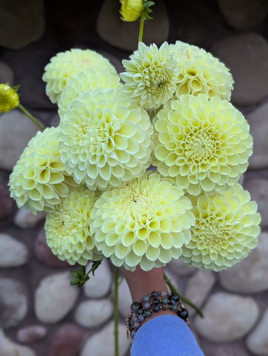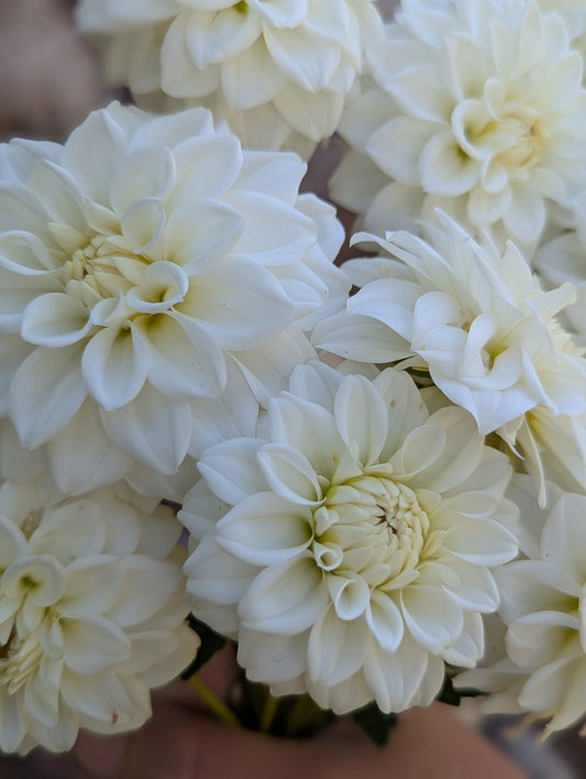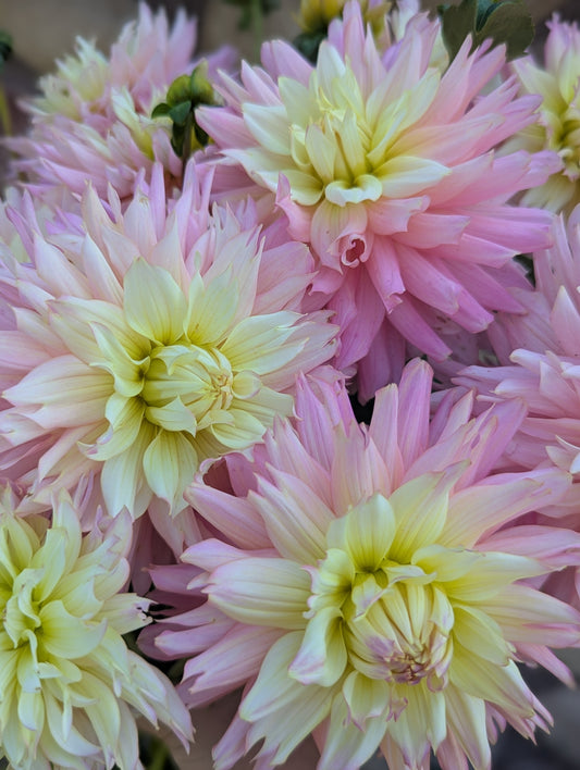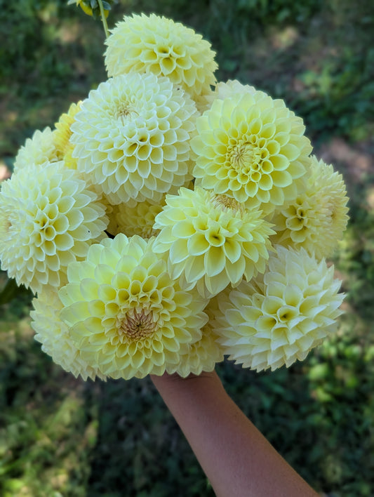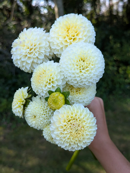 Welcome to Flora's Garden where our dahlias are an extension of the family. We give them so much love an care all year round. We grow our dahlias using organic methods. We use beneficial insects and organza bags to protect our petals from damage. Between our fertilizing, beneficial insects and a little prayer we did not even need to use organza bags for the entire second half of the growing season. We harvest the dahlias often always using a 10:1 water bleach solution, using this same practice between every clump when we divide. We take sanitizing seriously in our efforts to get the highest quality and healthiest tubers to our customers. We cull throughout the season any suspicious or stunted plants. Rest assured we only sell healthy looking and productive varieties. We prioritize dahlias that work best as cut flowers and are always fine tuning our catalog to include the best cut flower varieties as well as some fun unicorns. In 2025 we grew around 1,500-1,600 dahlias and had good tuber production. It should be a great sale!