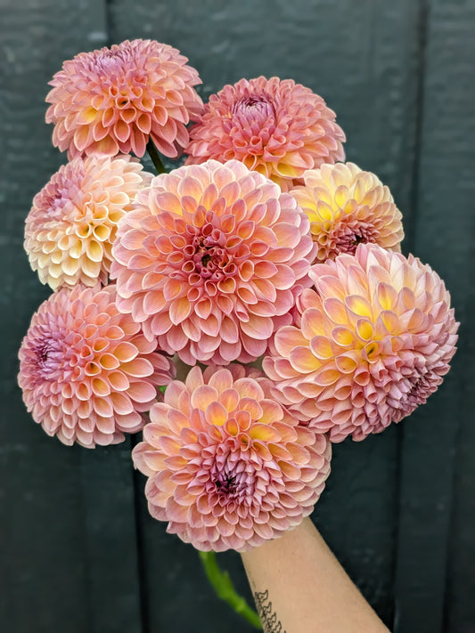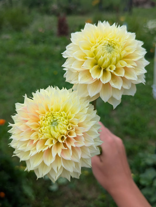 Welcome to Flora's Garden where our dahlias are an extension of the family. We give them so much love an care all year round. We grow our dahlias using organic methods. We use beneficial insects and organza bags to protect our petals from damage. Between our fertilizing, beneficial insects and a little prayer we did not even need to use organza bags for the entire second half of the growing season. We harvest the dahlias often always using a 10:1 water bleach solution, using this same practice between every clump when we divide. We take sanitizing seriously in our efforts to get the highest quality and healthiest tubers to our customers. We cull throughout the season any suspicious or stunted plants. Rest assured we only sell healthy looking and productive varieties. We prioritize dahlias that work best as cut flowers and are always fine tuning our catalog to include the best cut flower varieties as well as some fun unicorns. In 2025 we grew around 1,500-1,600 dahlias and had good tuber production. It should be a great sale!