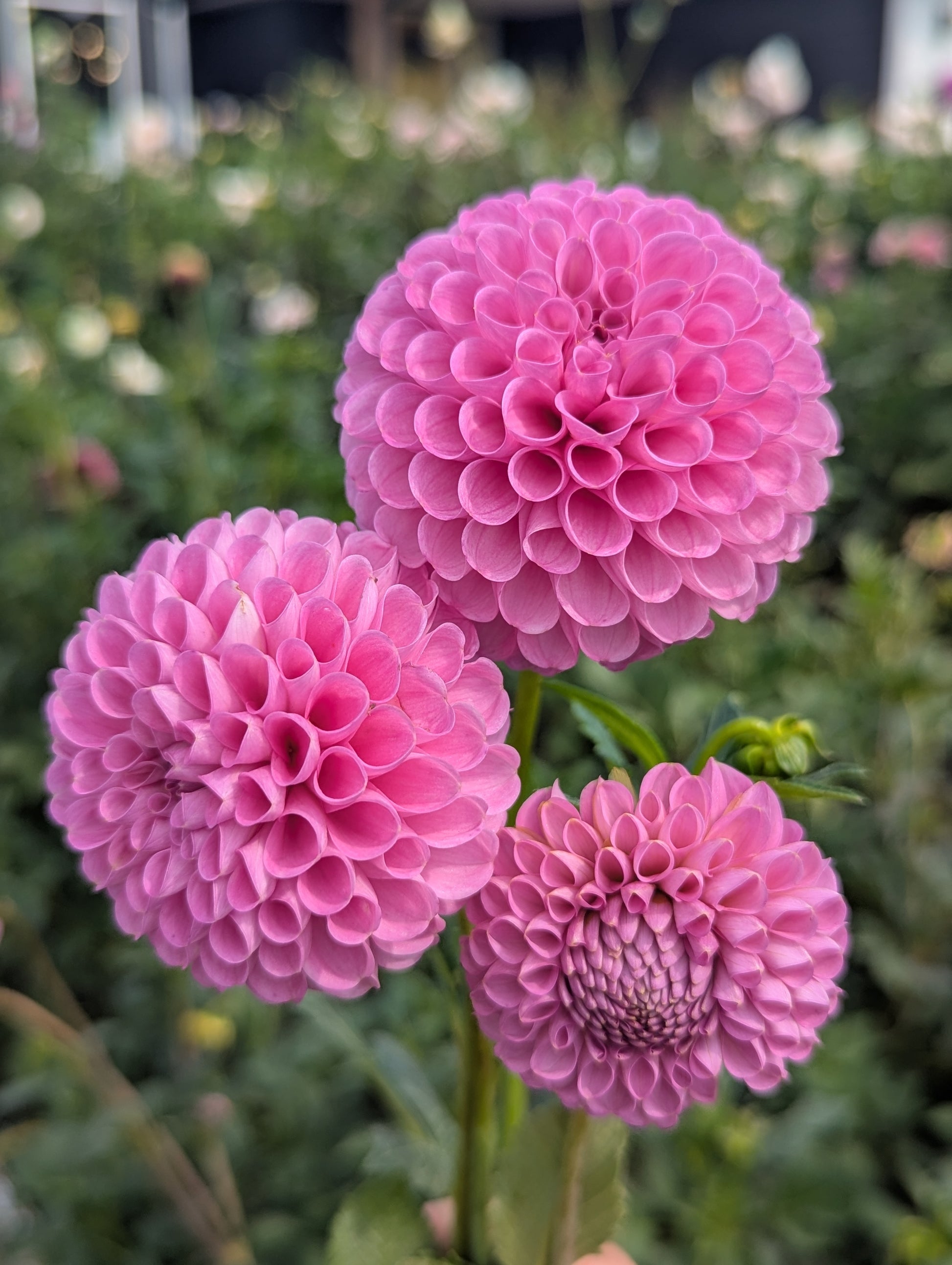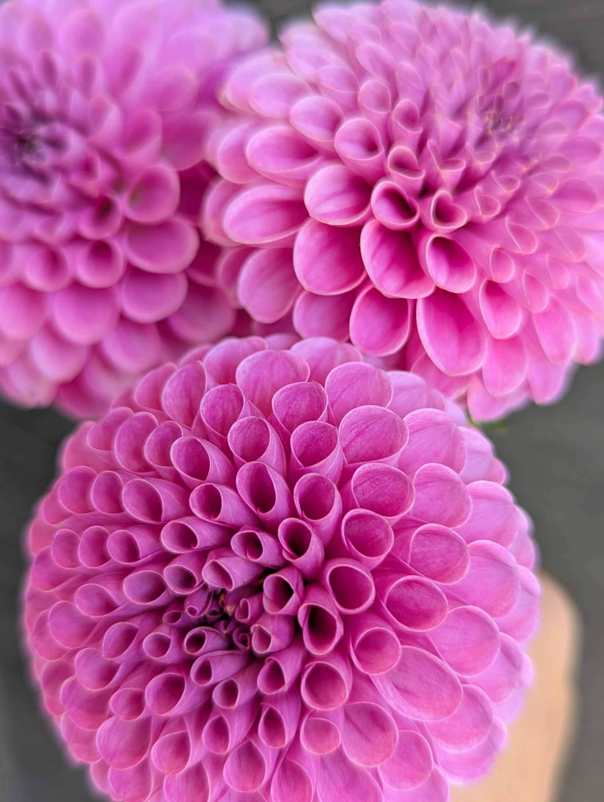 A lovely 2.5" ball variety best described as a dusty pink lavender.. The color is hard to describe, but it does lean cool tones. If you're like me and went a too hard on the informal decoratives and don't have enough balls varieties this is a great add and has a great vase life!