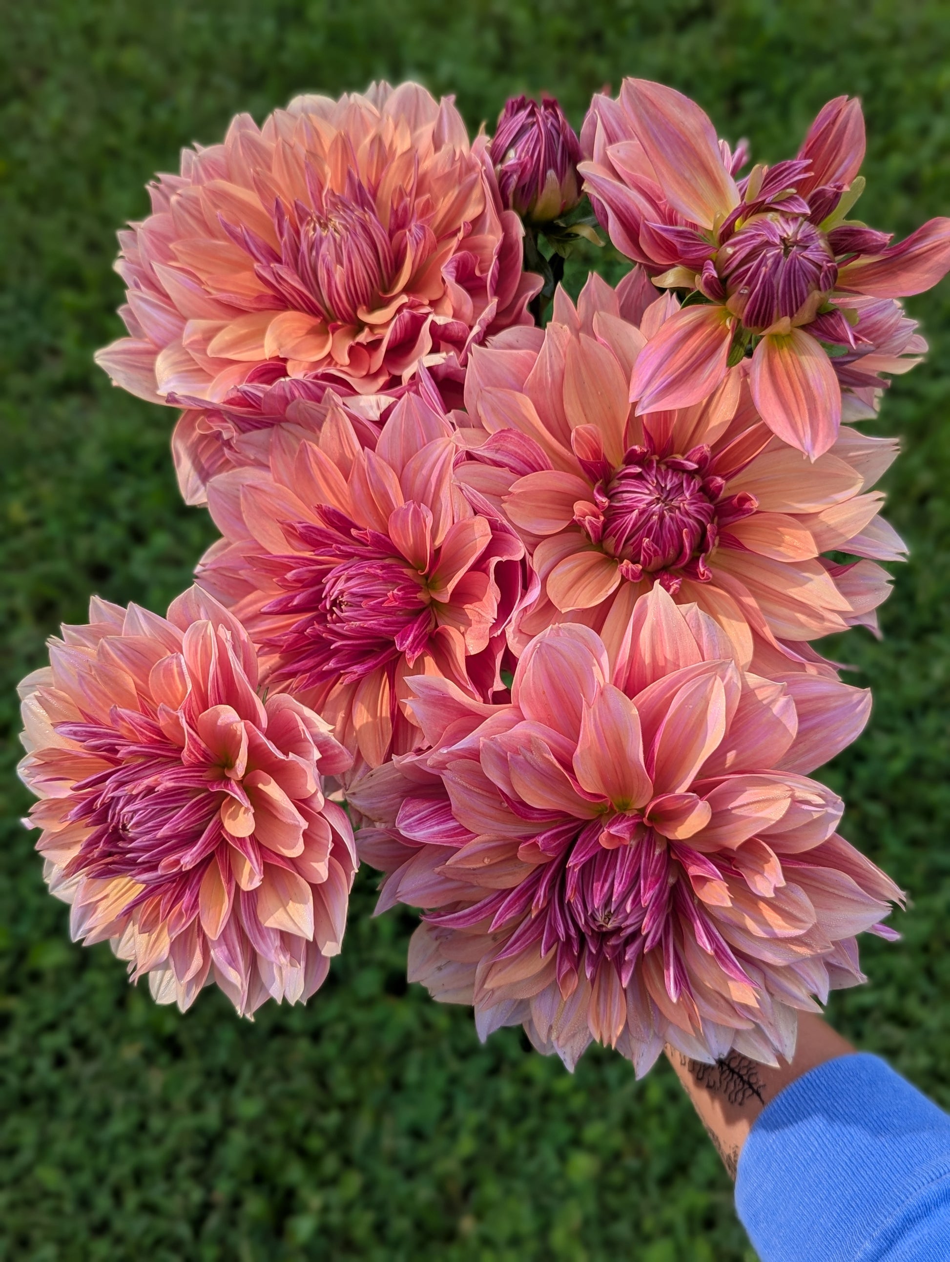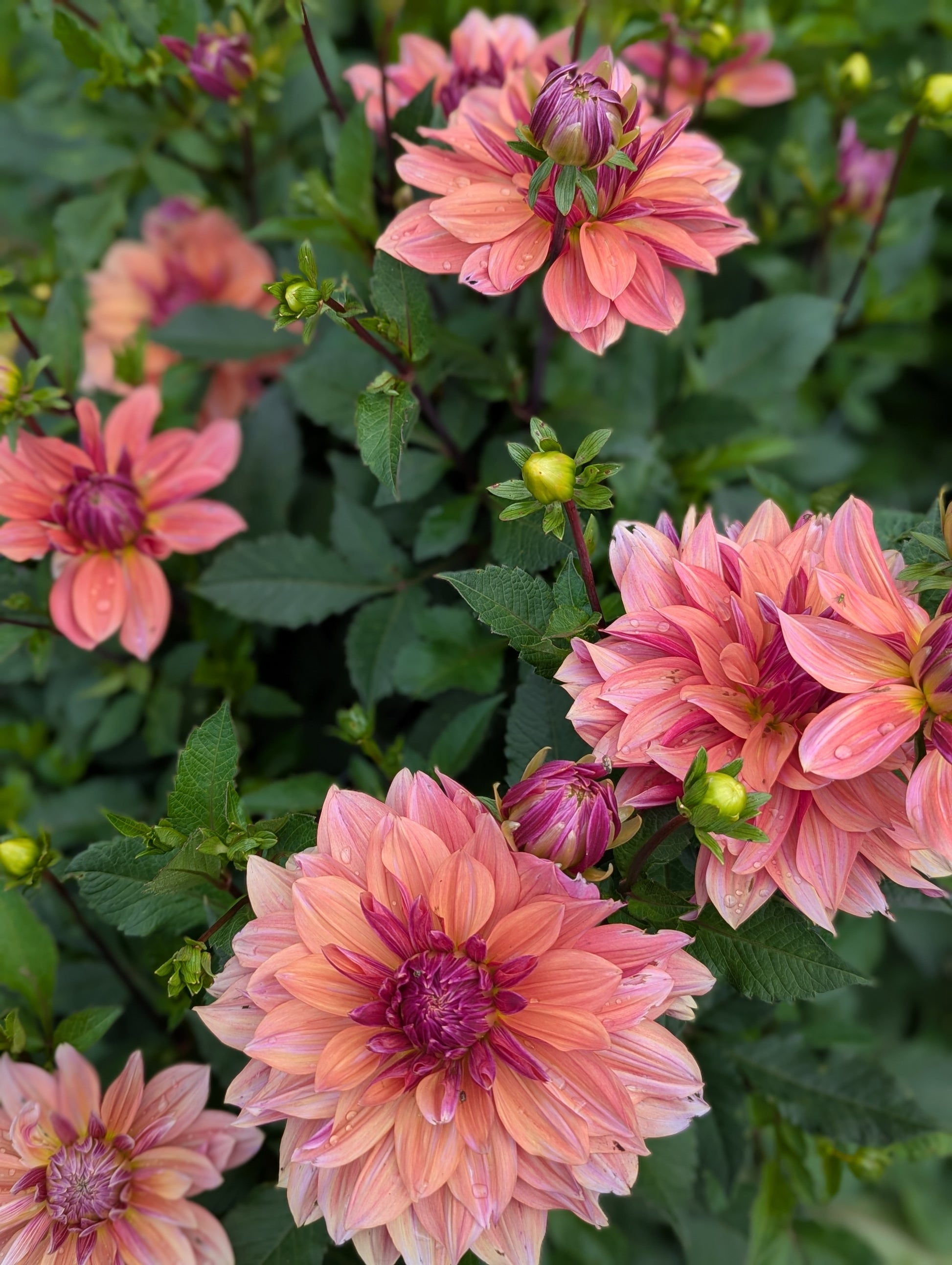 A fantastic variety with plants absolutely loaded with blooms. Flowers are 5-6" across and have gorgeous apricot coloring on the top side of the petals with a cranberry toned back sides making for a show stopping effect.