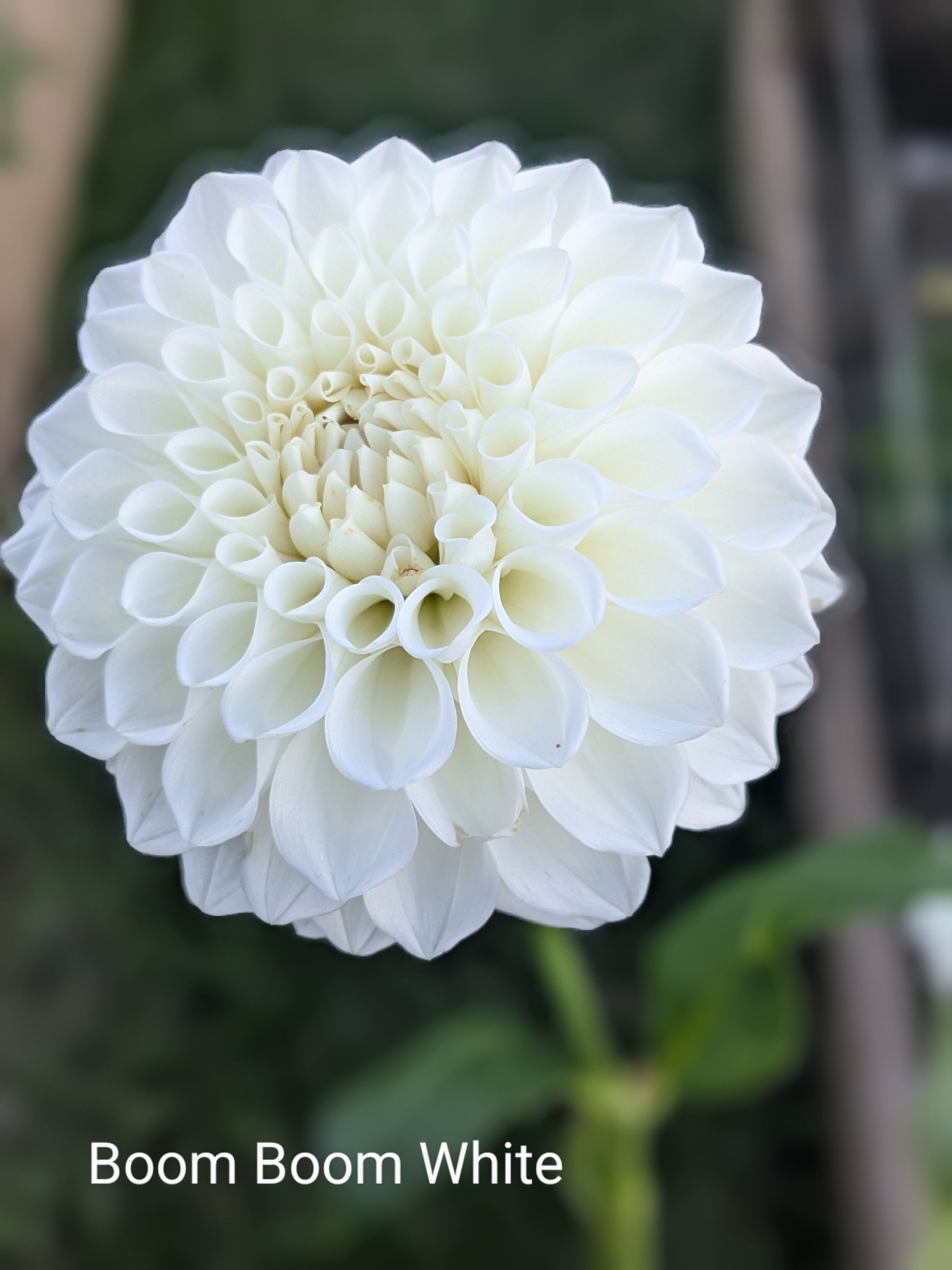 A beautiful white formal decorative dahlia on a very productive plant. The slightly rounded petals make it one of my favorite whites. A true white staple.