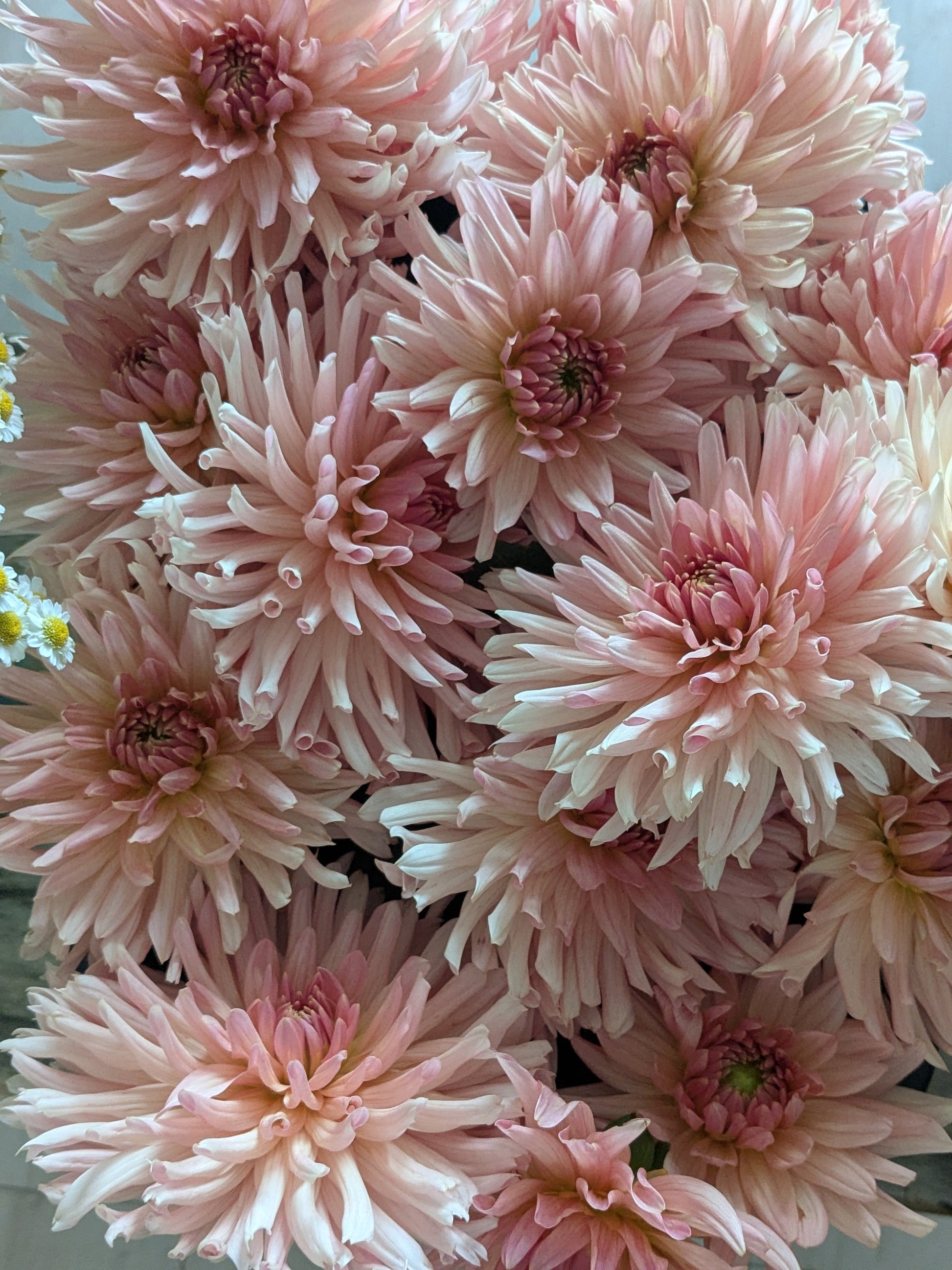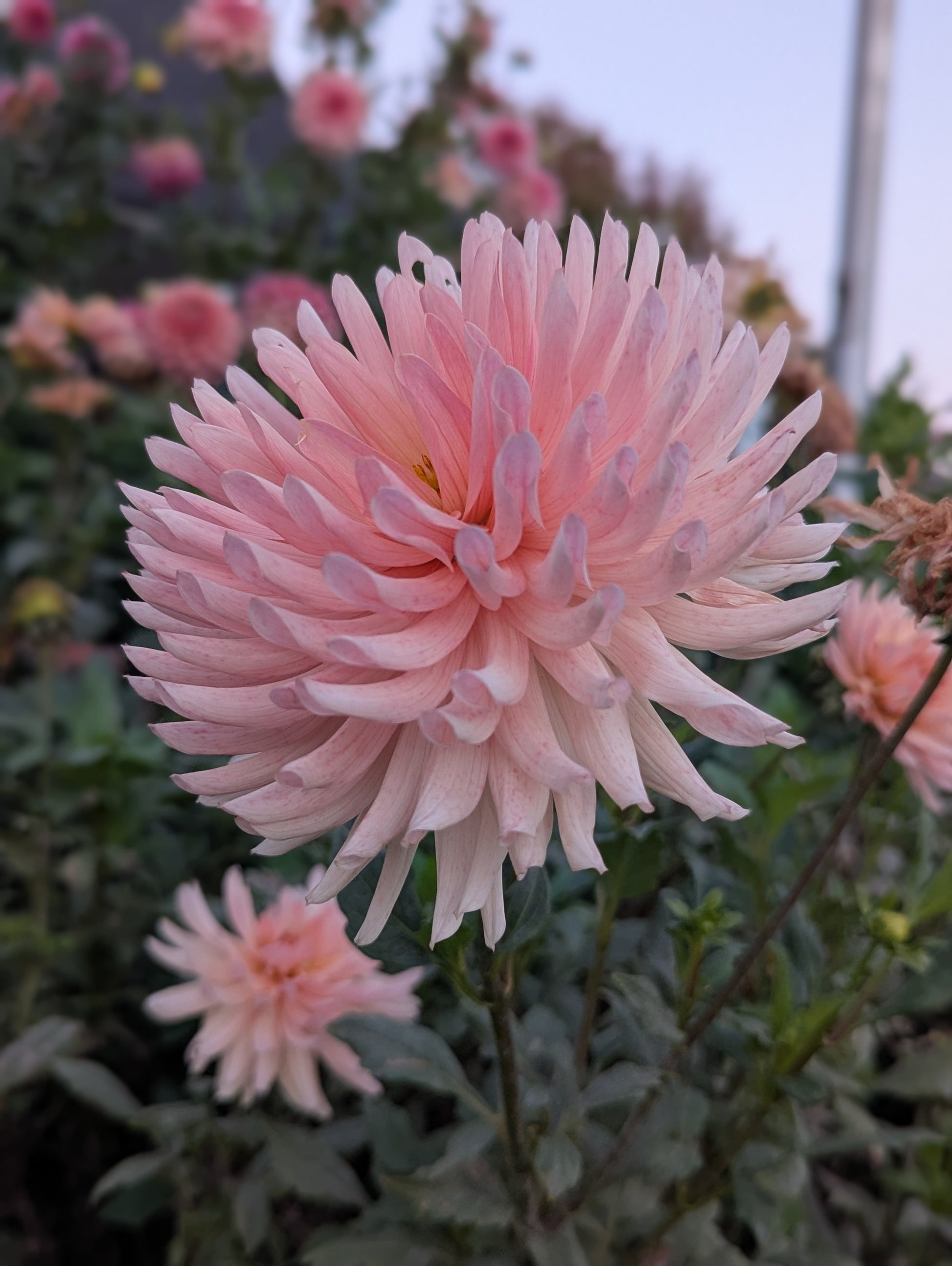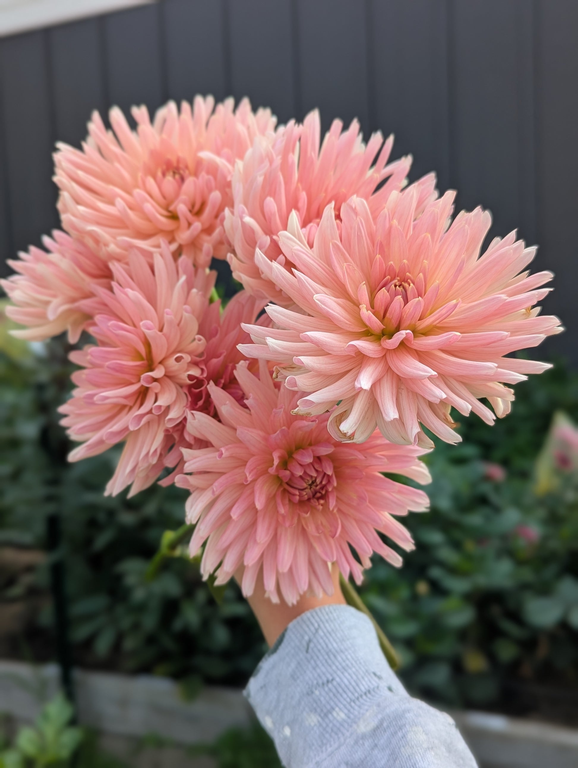 I love love love love love Camano Cloud. It's a semi- cactus and it is the most perfect dusty peach. It doesn't pull pink or orange, just a true peach. It was a workhorse for me in 2025 and I sold so many stems to florists. I think everyone should grow this one. Blooms range from 3.5-5" across. I haven't seen this one sold many places and we are excited to offer it in our sale this year!