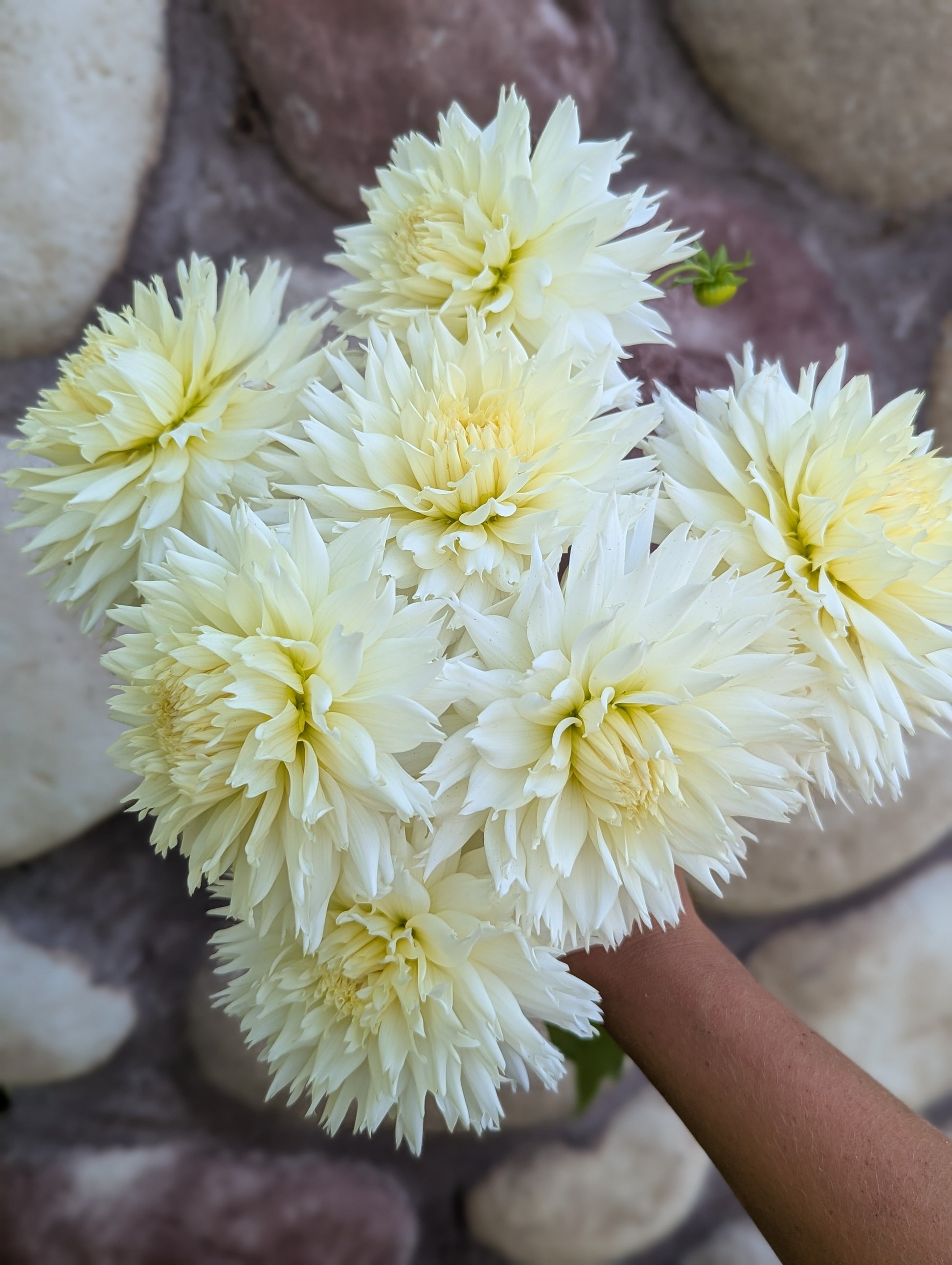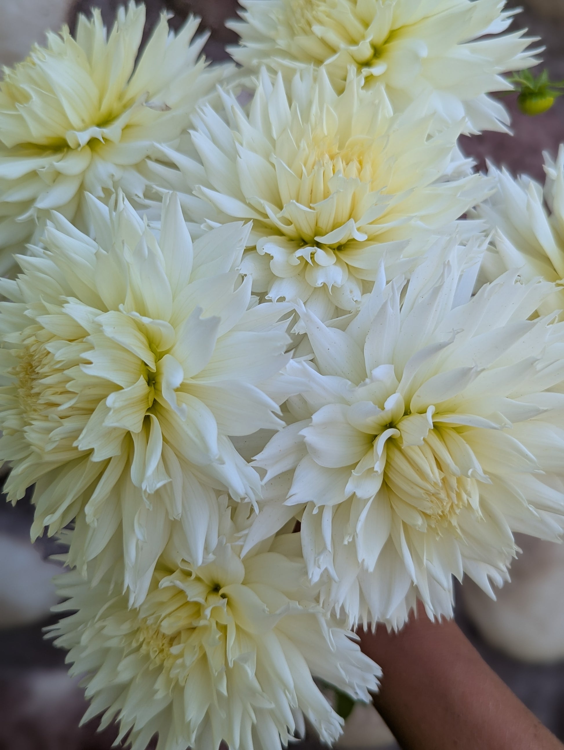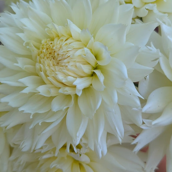 This was an unexpected favorite this year! Florist still love and need whites for their weddings and they LOVED the texture on this lacinated variety. I'm often underwhelmed by whites but this one did not disappoint and exceeded expectations. About 4" across