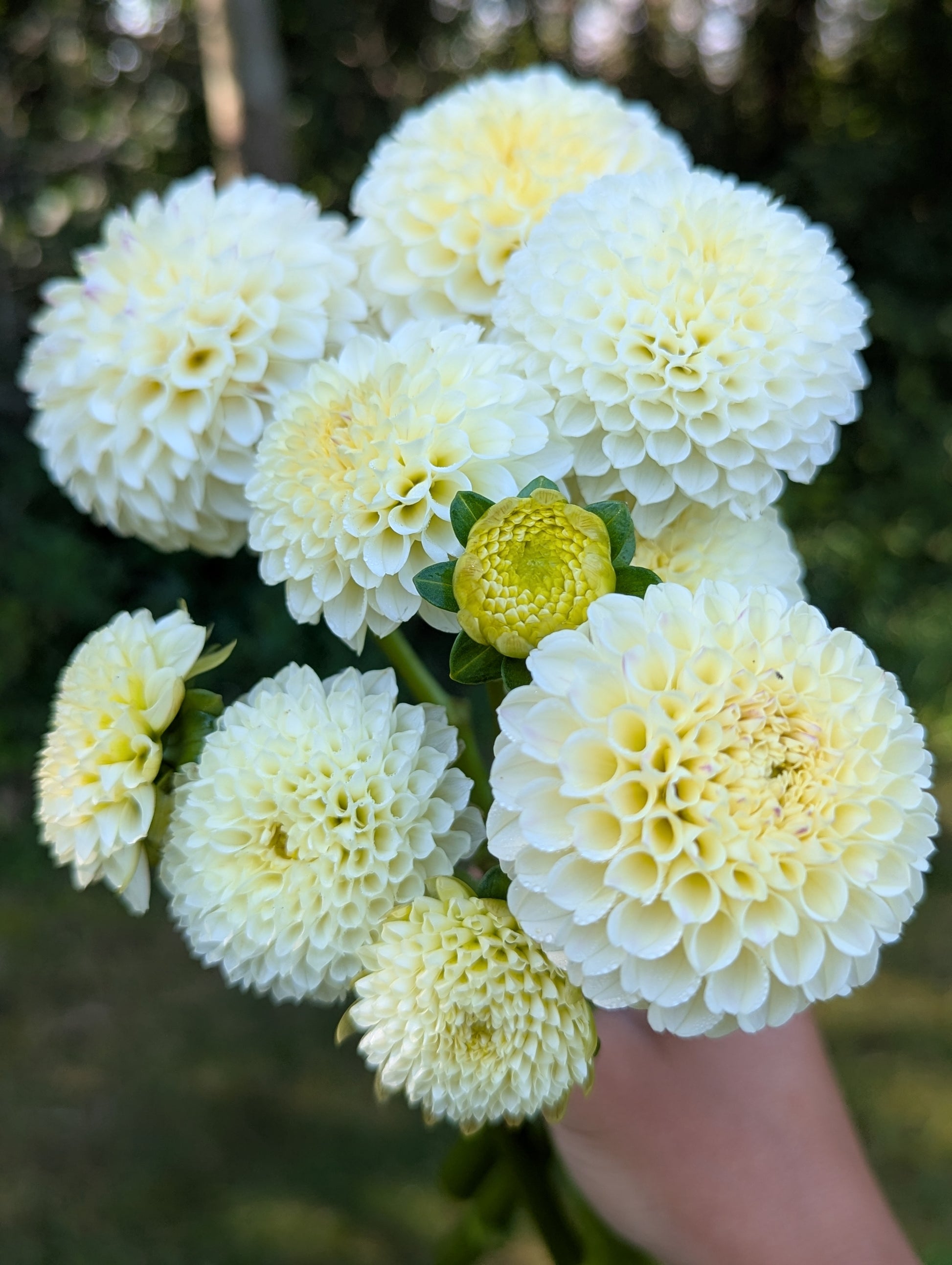 Stunning creamy miniature ball dahlia 2" across. Florist were all about the creams in 2025 and I expect that trend to continue into 2026. A staple in my opinion.