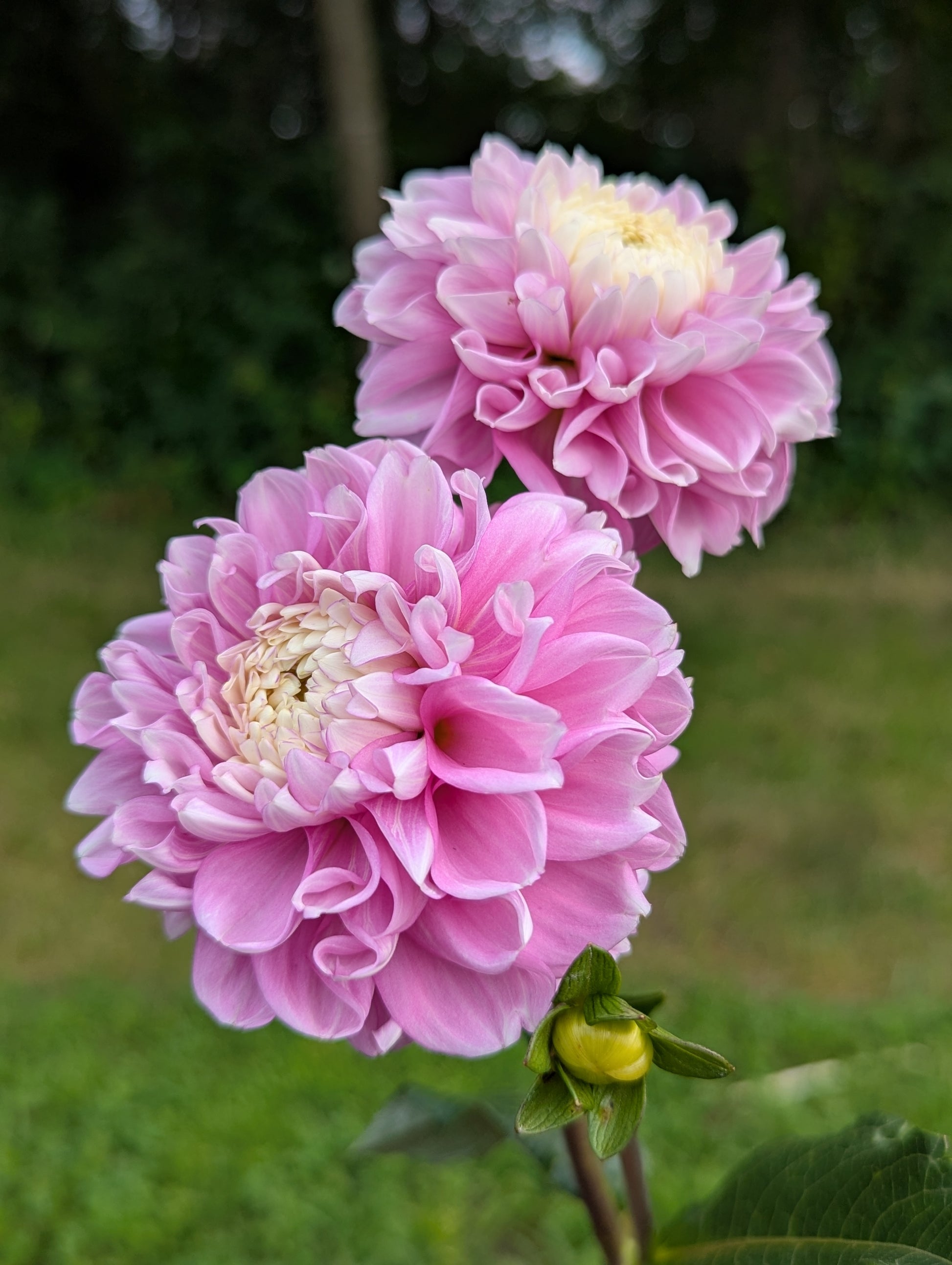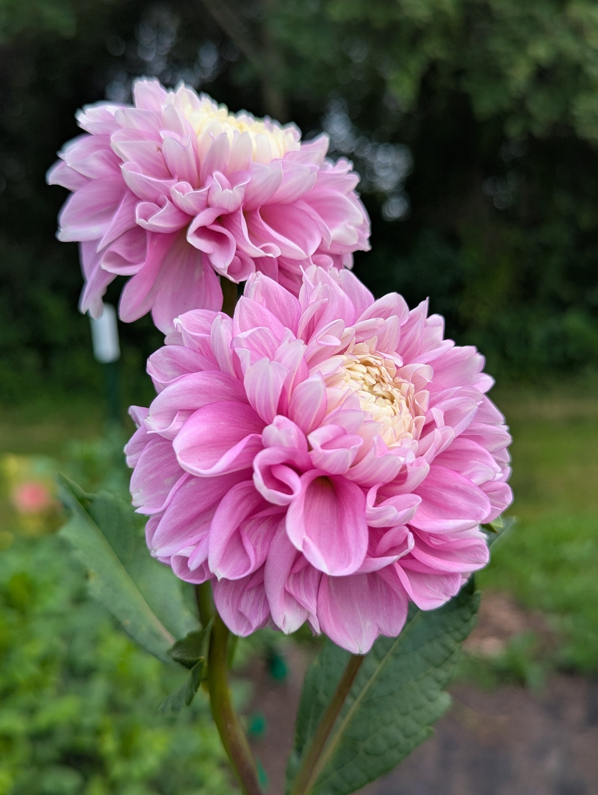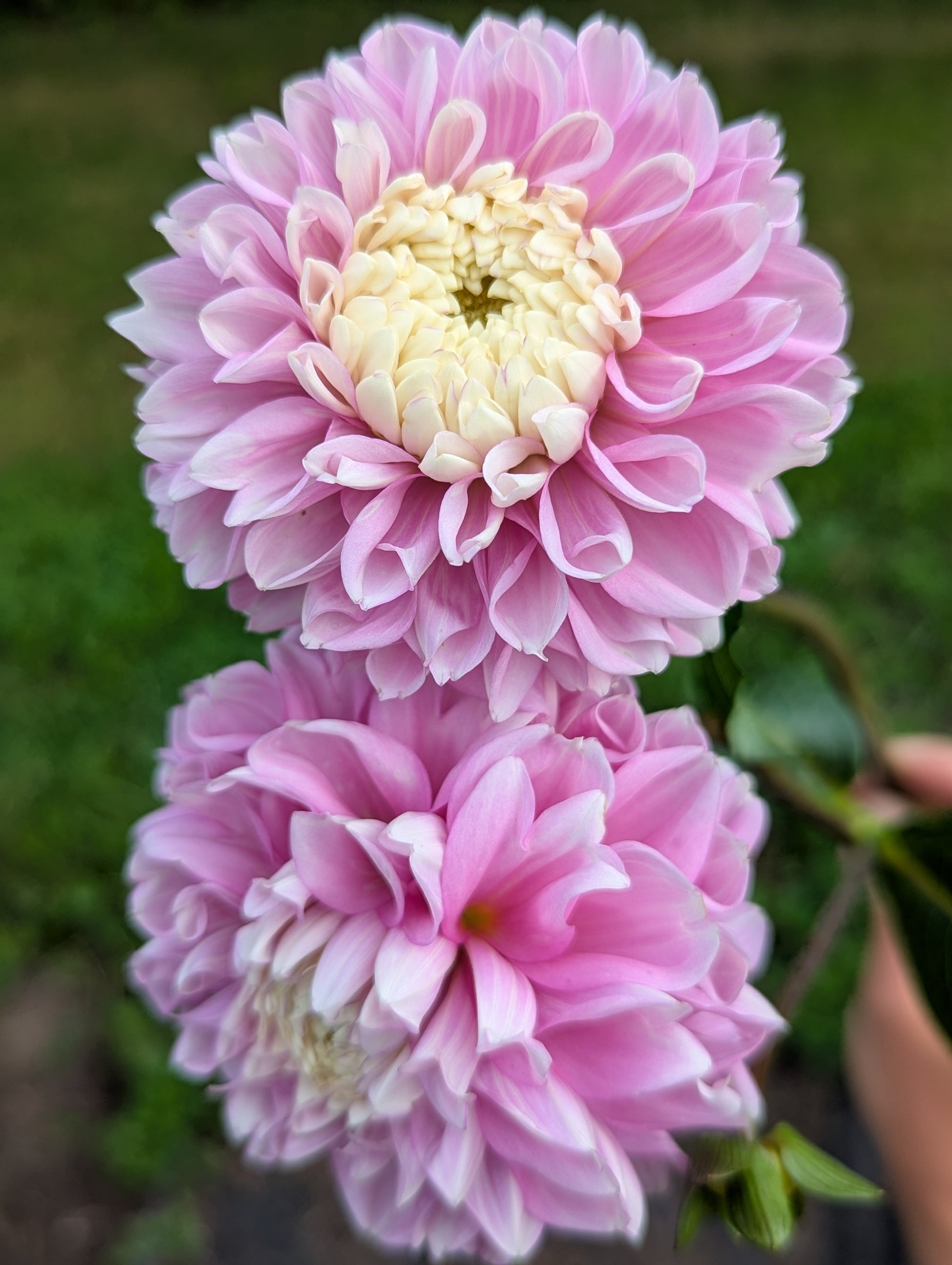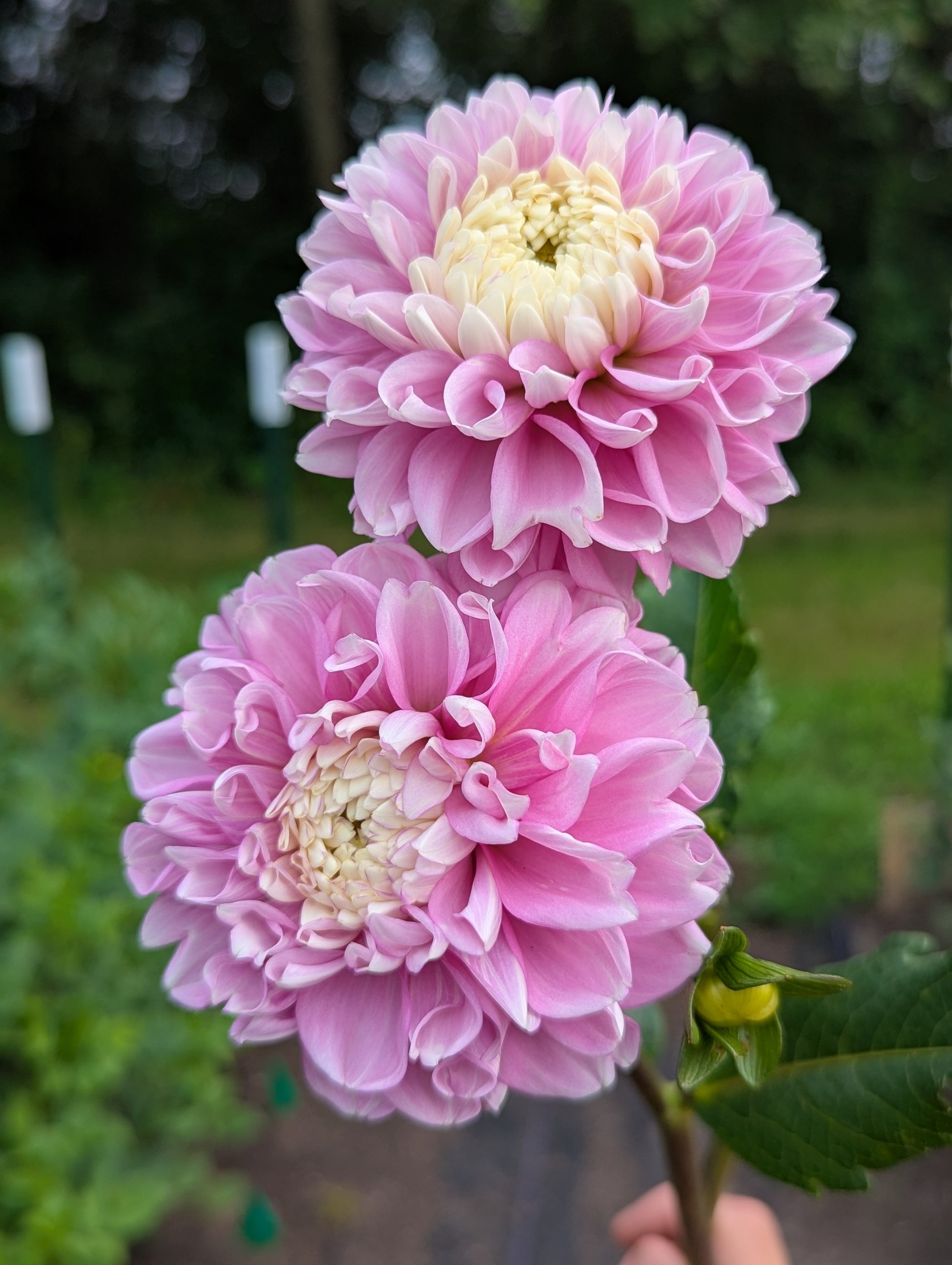 A small formal decorative with very unique petals. It was aptly named. The color, fluffy petals, and long stems make it a good one to have in the garden. She's prone to blow her center so harvest a day or two early.