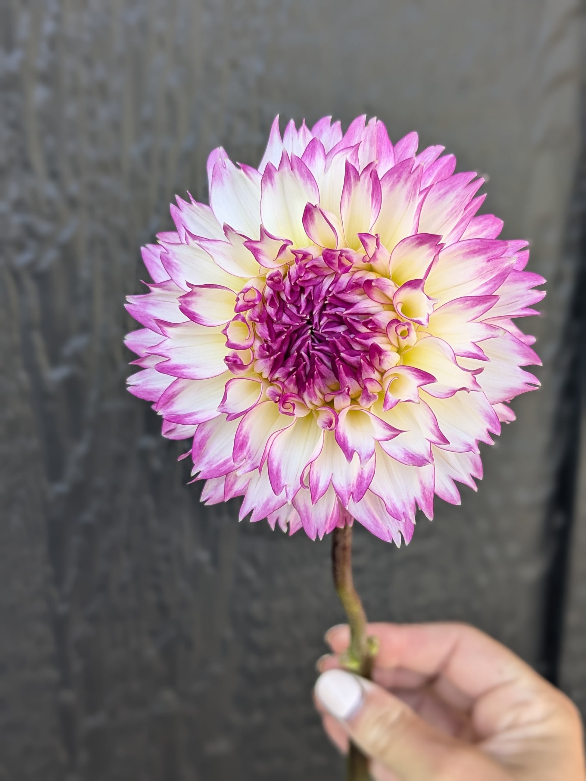 A small bloom that really packs a punch! About 3" across with lacinated petals. It incorporated really well into bouquets and arrangements. I love dahlias with lacinated petals, that change in textures adds a lot depth to your work.