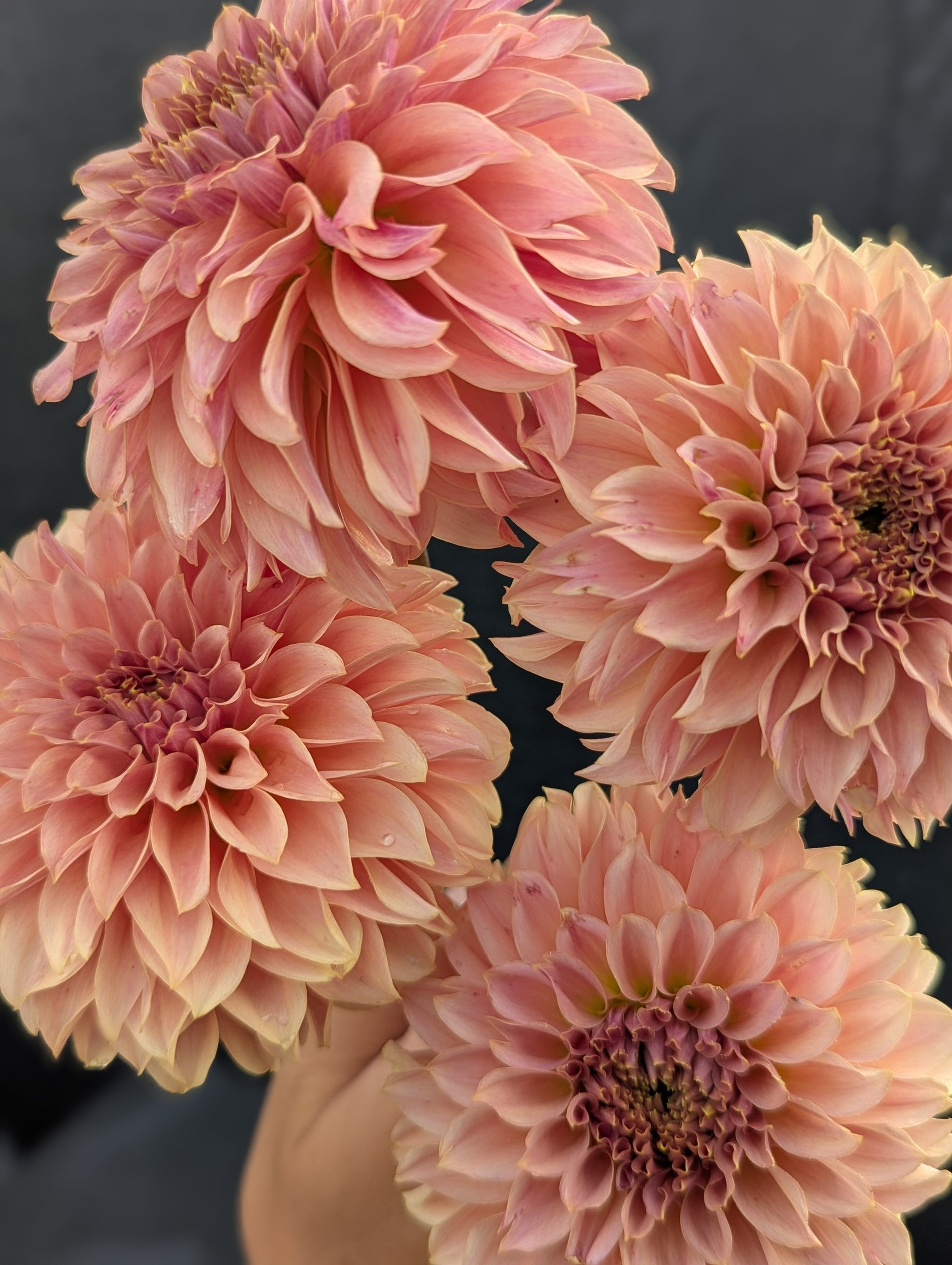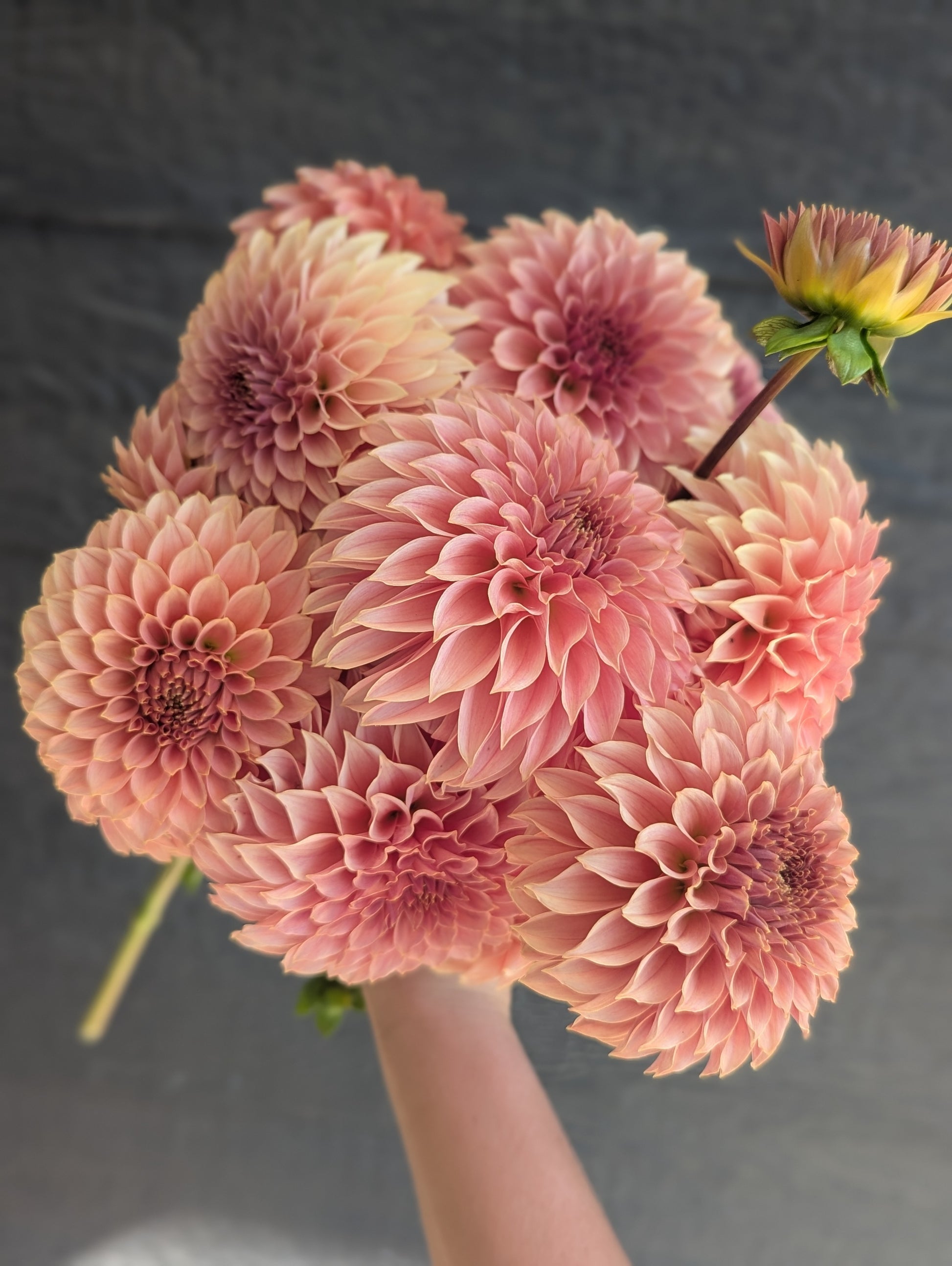 A beauty with such a distinct petal shape, she's easily identified. Blooms are just barely 4". Fantastic peach coloring easily used in any bouquets and arrangements. Productive and tall plants with great stem length. A great addition!