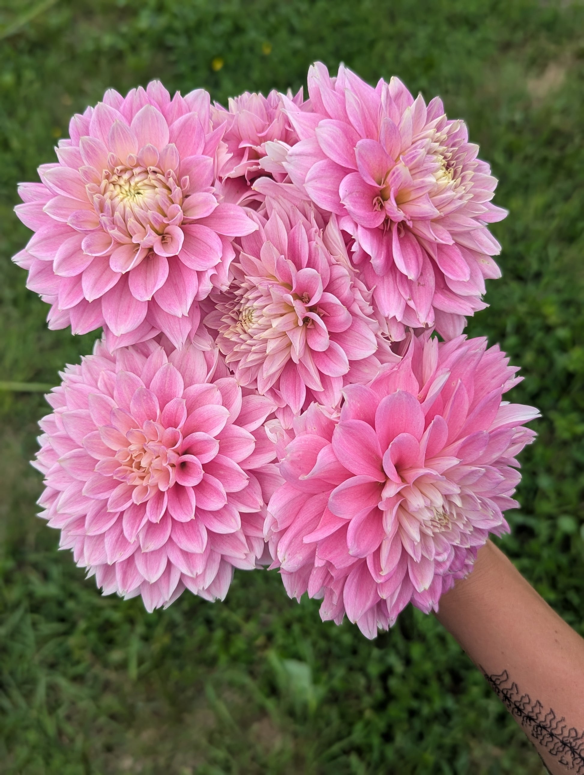 If you're looking for a good pink, let me introduce you to Miss Sarah! A very tall plant with long stems and so many blooms! A top 10 dahlia for me. Once you add this one you will grow her forever!