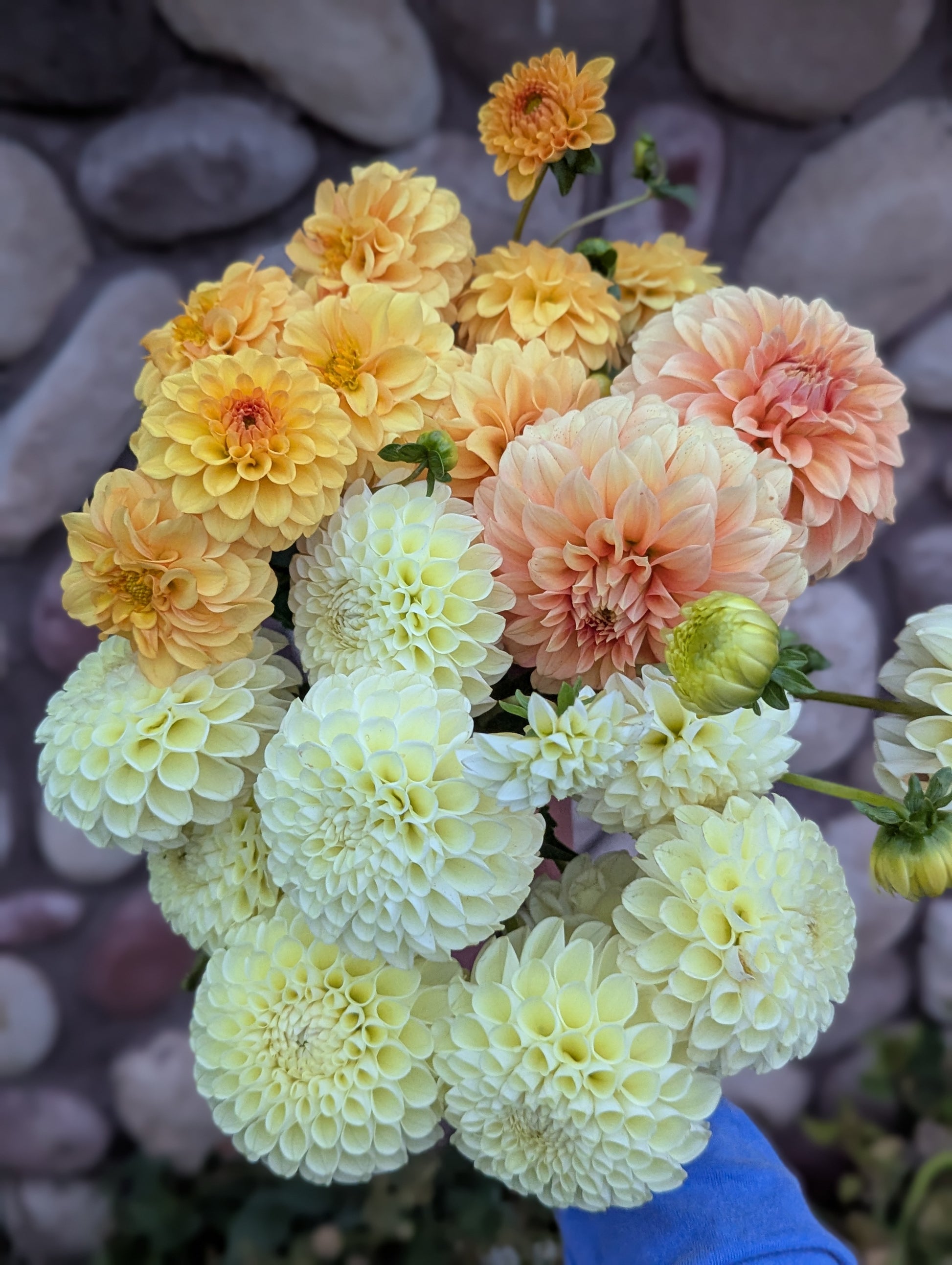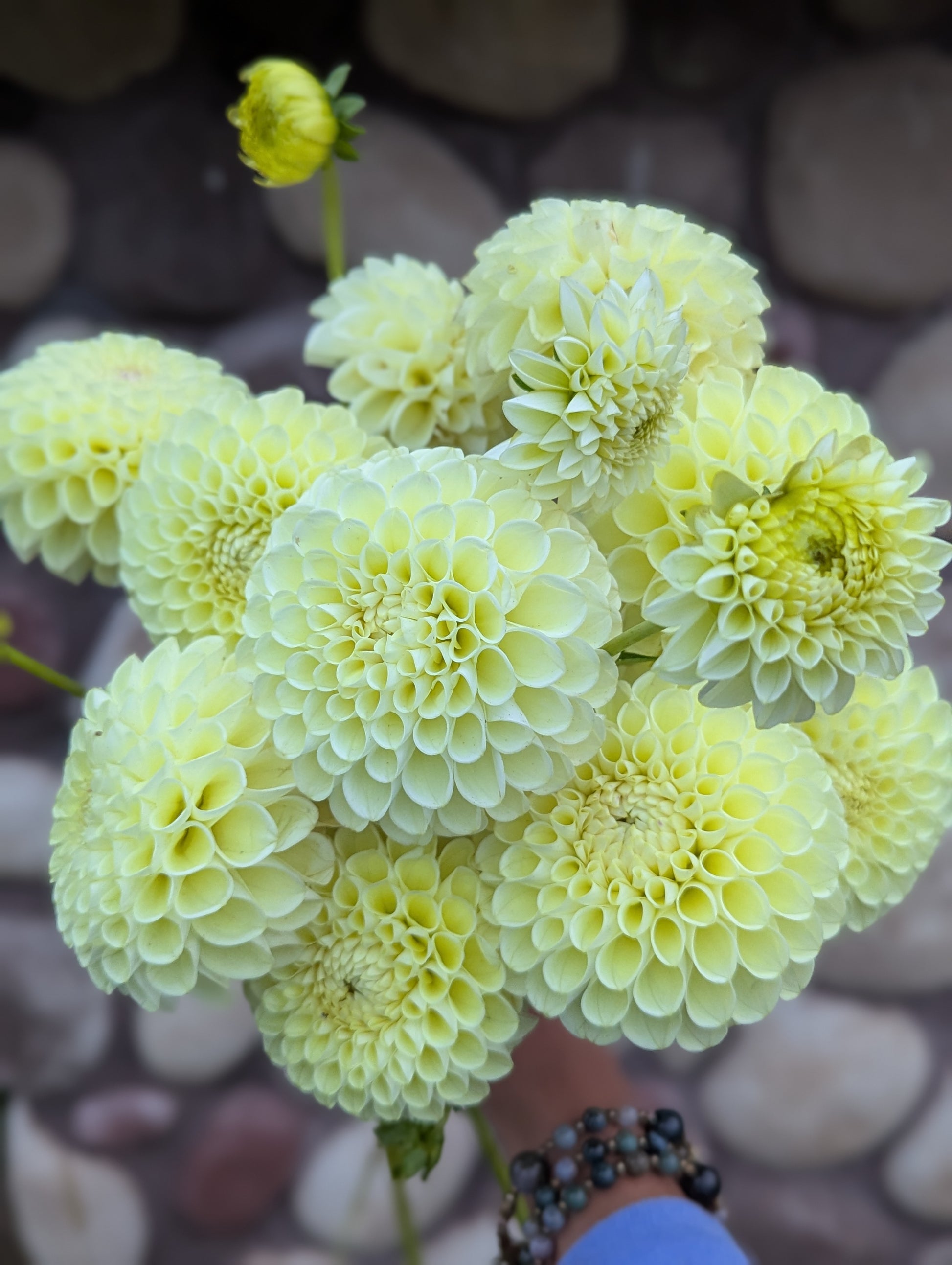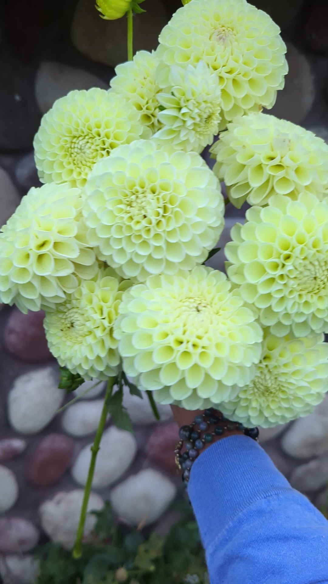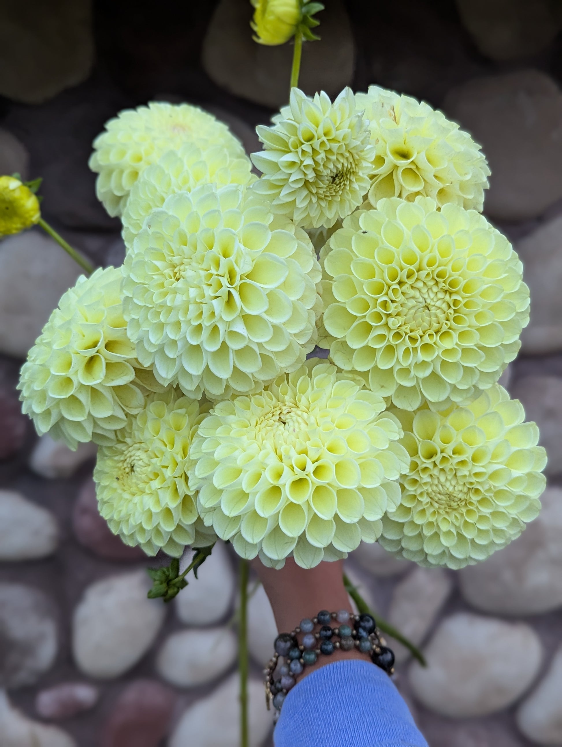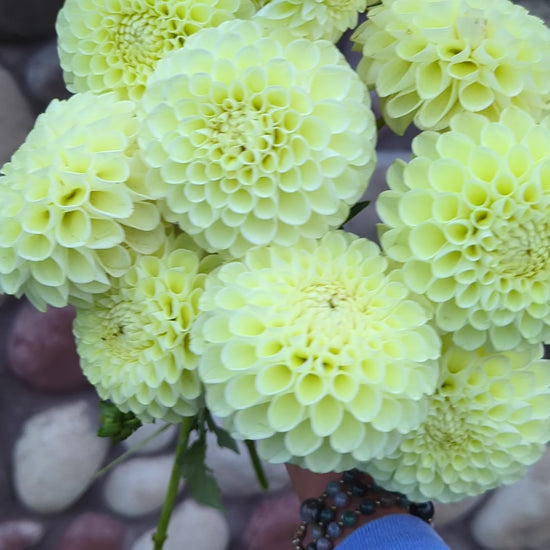 These large plants produced perfect flower after perfect flower after perfect flower! A lovely yellow cream ball dahlia. Florists were all about the creamy yellows in 2025 and I don't see that trend changing anytime soon. I HIGHLY recommend this one! Flowers are about 4" across.