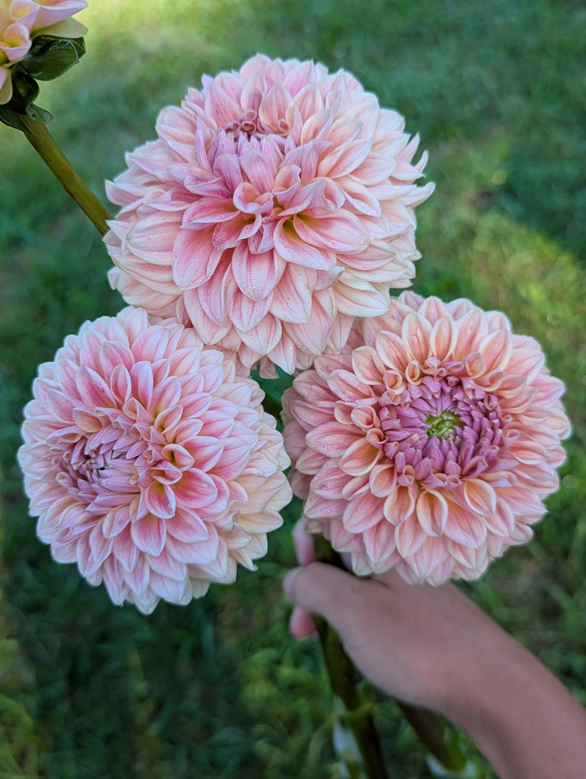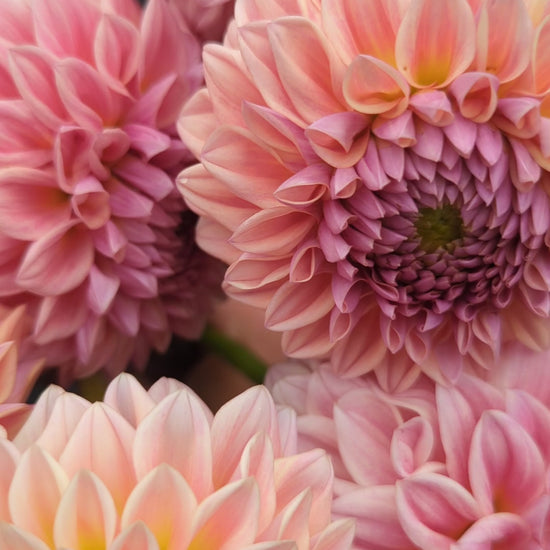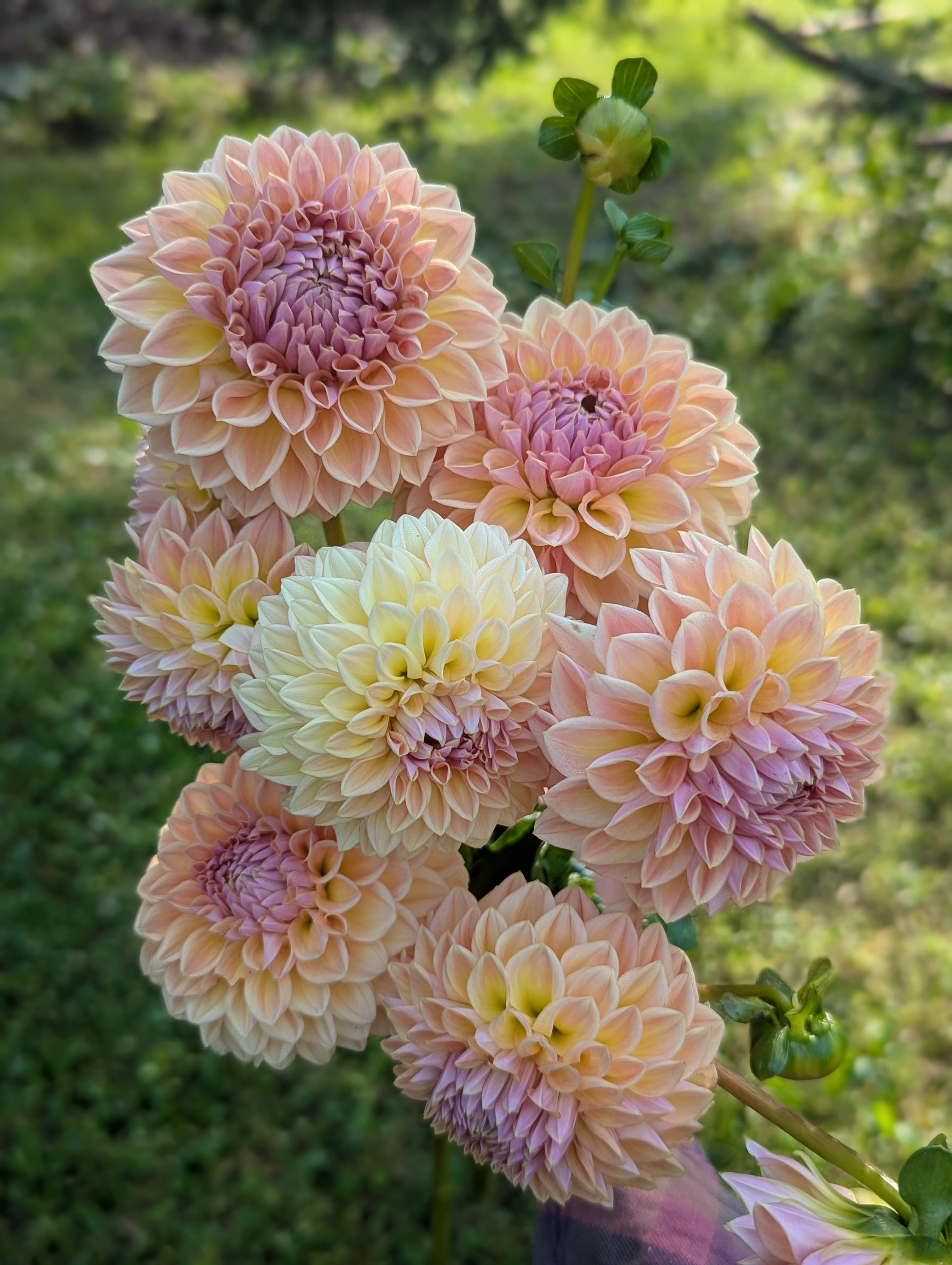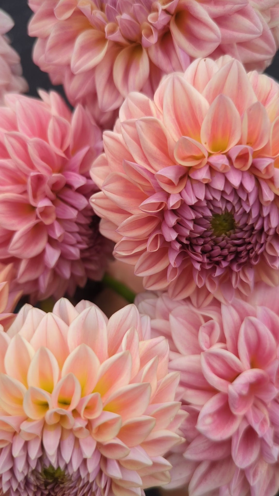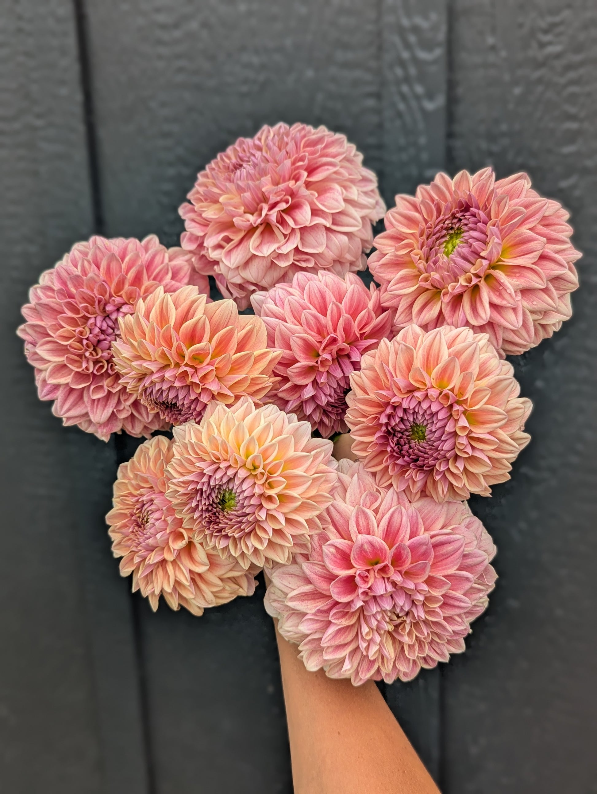 A very swoon worthy dahlia. I LOVED incorporating this into bouquets. Pinks, yellows, purples, whites, peaches: they all pair fantastically with RM Summer Haze. I love the dusty purple center, and the somewhat ruffly petals really stand out. Productive, sturdy plants. Blooms are about 4-5" across.