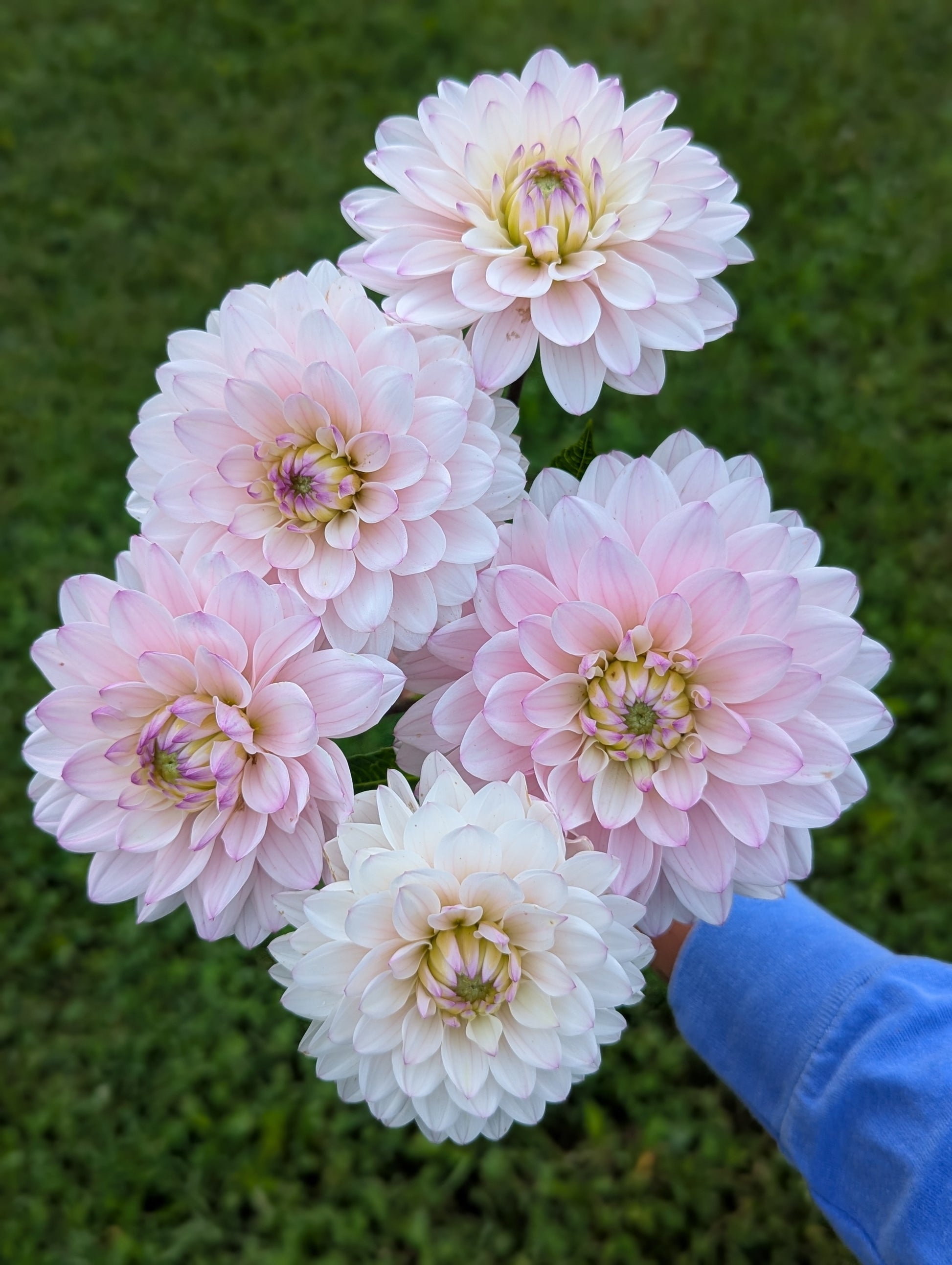 I've grown this variety for many years and this year... wow wow wow! She had morning shade this year which may have contributed to her breathtaking blooms? She performed incredibly well. I actually tried to nix her from the lineup but unexpectedly had extra tubers so I decided to give her another year. Can you imagine if I'd given up on this beauty! We fertilized and watered extra this year as well, so she likes a little shade, a hearty dose of fertilizer and of course lots of water! A beautiful blush waterlily dahlia that works effortlessly in bouquets. Blooms are completely facing upwards which is a big pro for me and about 4.5"-6" across!