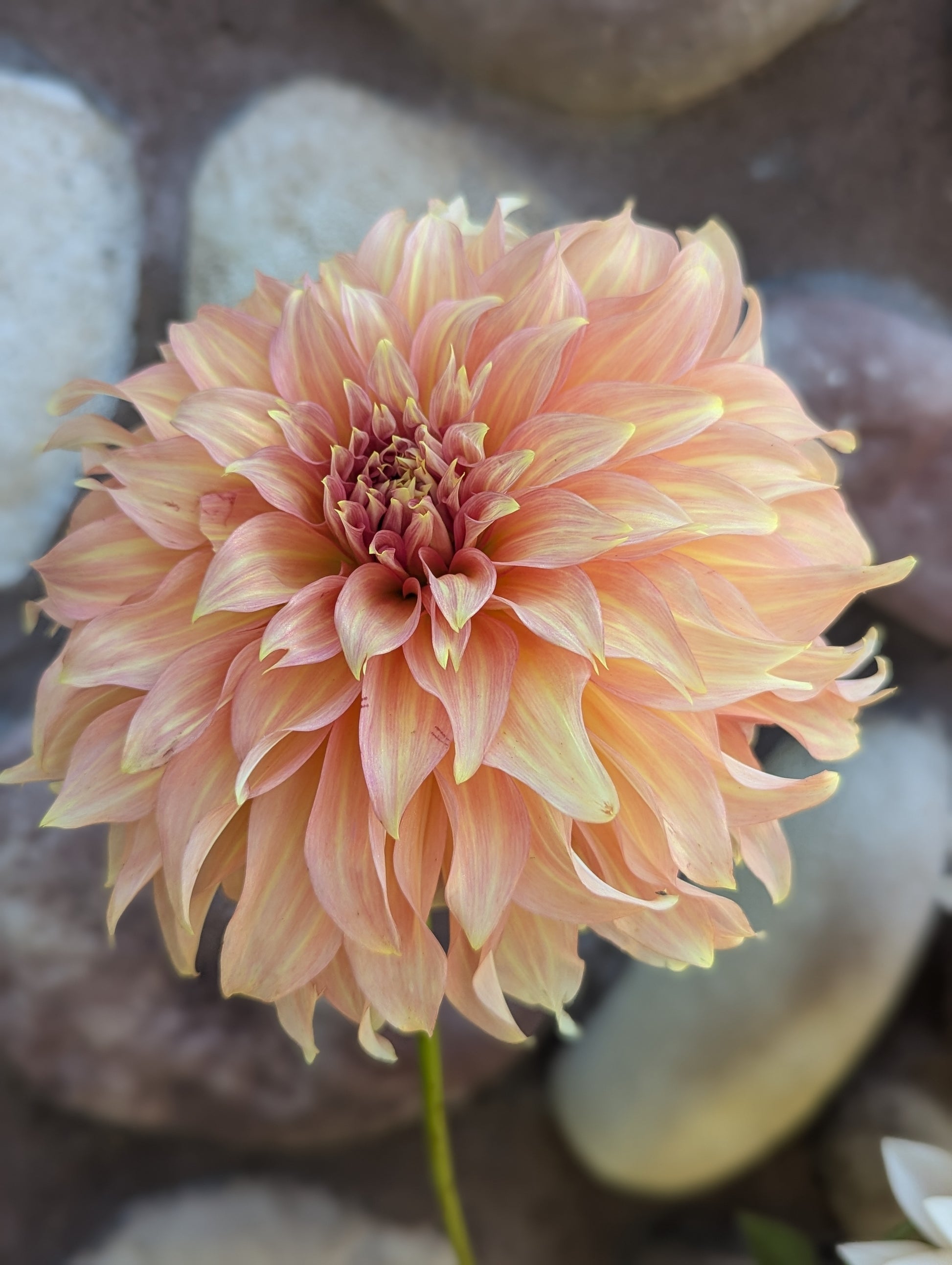 Holy Fluffy goodness! Summer Rain is such a beauty in the garden with petals for DAYS. It's an informal decorative with twisting curly cue petals and 6-8" blooms and 4' tall. Stems and bloom attachment are strong. The peachy pink bronze coloring ranges throughout the season and is super easy to incorporate into bouquets and arrangements with multiple color ways