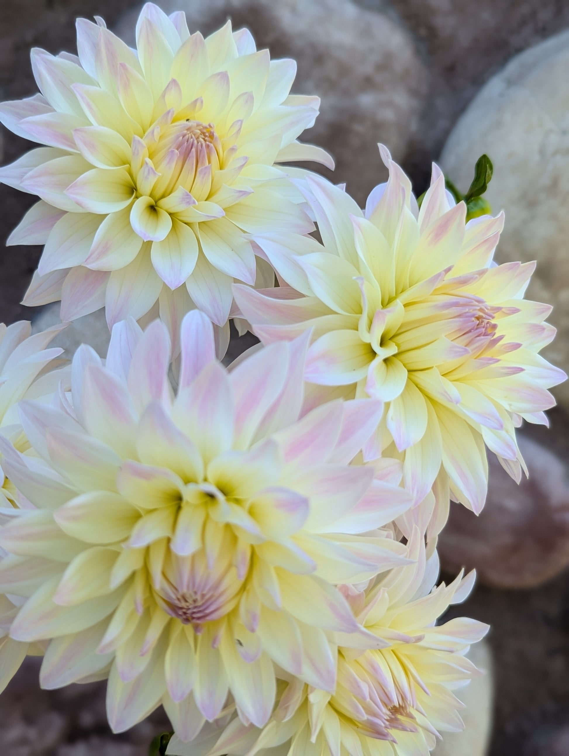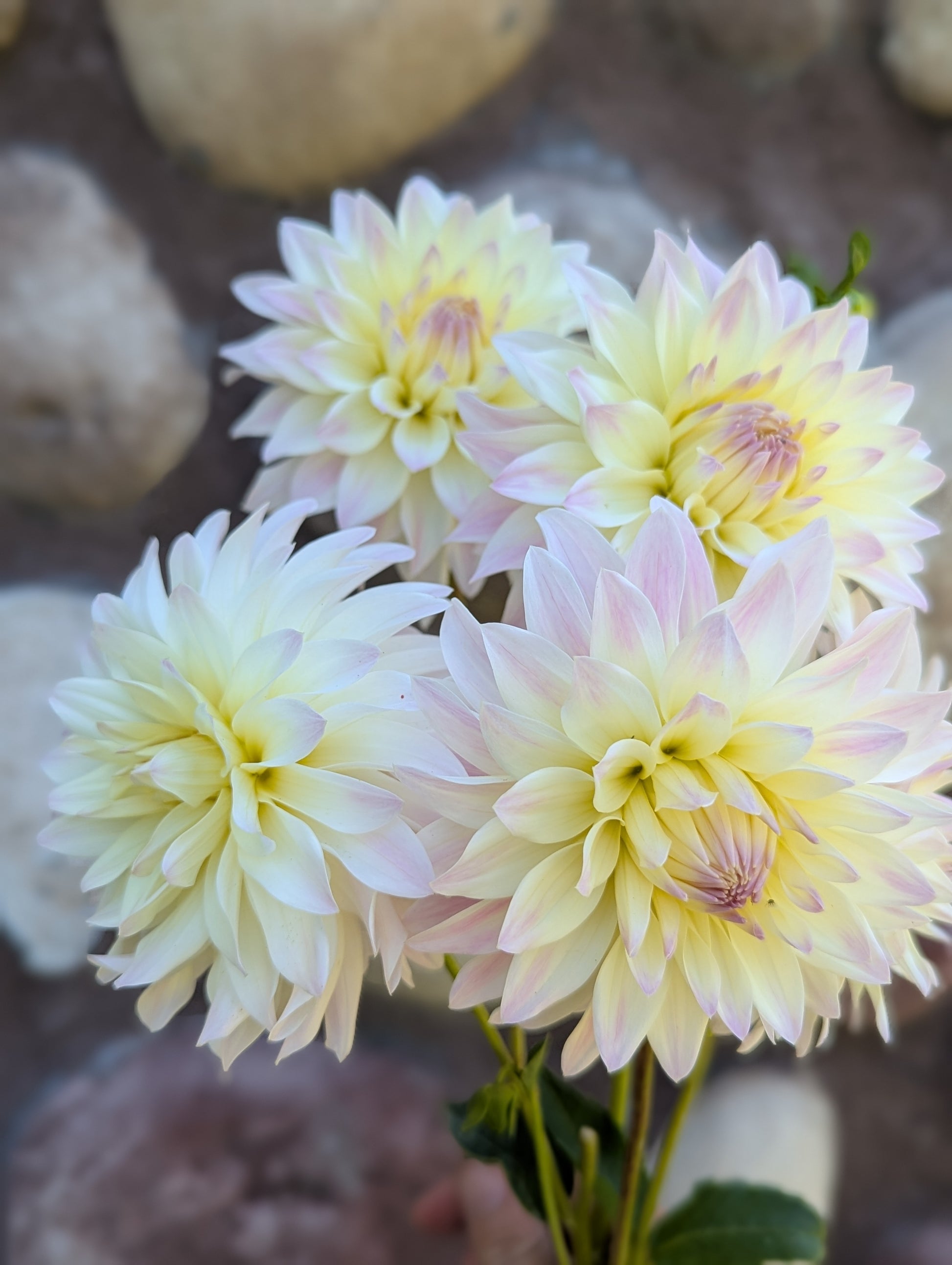 This beautiful informal decorative is an early bloomer and graced some of my earliest dahlia bouquets this year. It bloomed all season long and was one of my most floriferous varieties. The subtle blush tips make it an elegant addition in the garden. Blooms are about 3-4" across. Harvest 1-2 days earlier than you think as it's one that continues to open and is more prone to an open center.